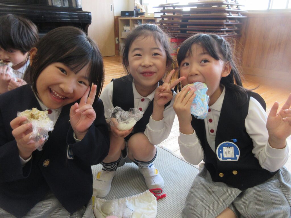 授業をがんばった子どもたちはお家の方に作っていただいた、おにぎりも食べました☆彡